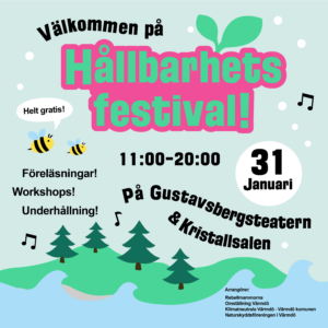 Nu är det dags igen! Hållbarhetsfestivalen är tillbaka den 15/2 med massor av föreläsningar, workshops, utställningar och inspirerande samtal! Välkommna!